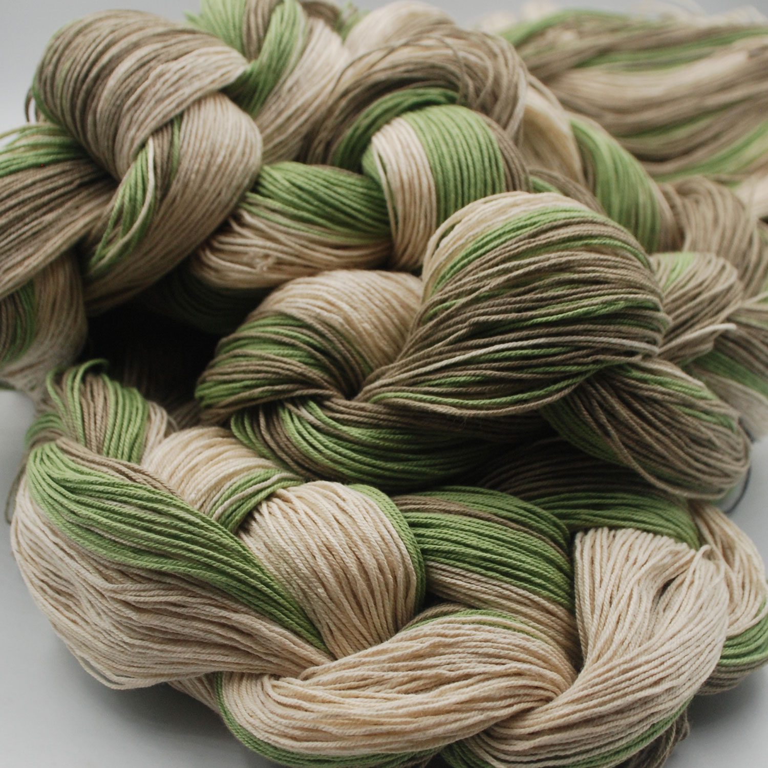 Varpfläta beige/grön/vit. 12/6 varp, 10,5 meter, 248 trådar, 65 lagn.